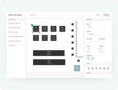 Our POS is equipped with a table management system that makes it easy to design your floor plan and rearrange it, take orders by table, and manage capacity – all of which help you provide seamless table service.